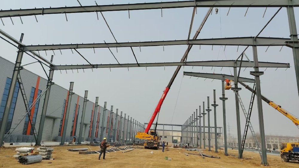 深州市金鼎建材有限公司鋼構(gòu)生產(chǎn)基地,坐落于深州市護(hù)駕遲鎮(zhèn),占地50余畝,并擁有現(xiàn)代化標(biāo)準(zhǔn)加工基地1.5萬(wàn)平方米,現(xiàn)代化辦公樓3000平方米,具備年產(chǎn)1萬(wàn)噸鋼構(gòu)件的生產(chǎn)規(guī)模,是集鋼構(gòu)設(shè)計(jì)、制作、銷(xiāo)售、施工安裝為一體的大型綜合性鋼構(gòu)企業(yè)。